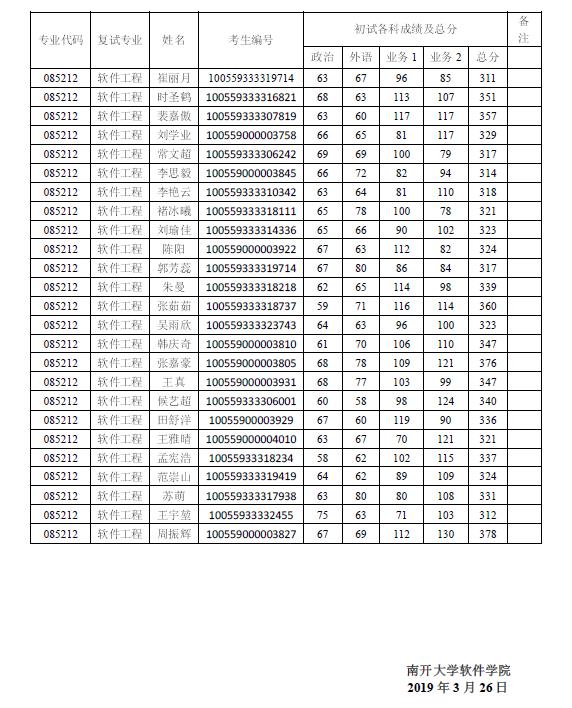 【研究生调剂信息】91探花视频 2019年全日制硕士研究生调剂考生复试名单2019-3-26